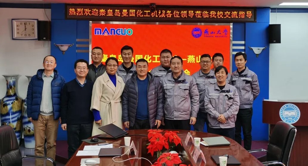 3月16日上午,秦皇島曼國化工機(jī)械有限公司(以下簡稱“曼國機(jī)械”)與燕山大學(xué)孔祥東教授團(tuán)隊(duì)在燕山大學(xué)東校區(qū)機(jī)械館301舉辦了校企合作交流會(huì)。曼國機(jī)械總經(jīng)理孫永常、常務(wù)副總翟中印、副總馬志國、副總黃斌、副總孟令儉、副總鄒博禹、總經(jīng)理助理程華偉一行7人參會(huì),燕山大學(xué)孔祥東教授、姚靜教授、艾超教授及部分師生代表參加了會(huì)議。